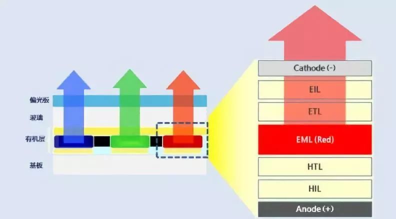 如果是頂部發光器件,光到達我們眼睛的方向為朝上。