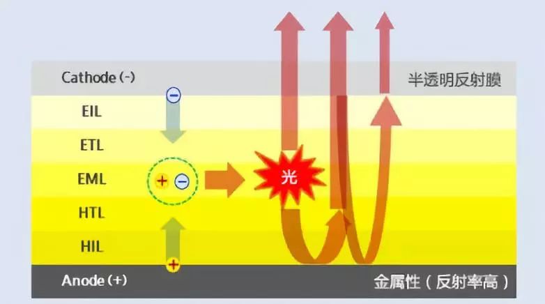 來自EML層的光,在OLED器件內部的不同界面進行投射和反射,這時候會出現復雜的干涉現象。