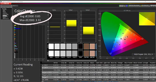 在低APL情況下,OLED的deltaE色準(zhǔn)甚至可以驚人的小于1.0